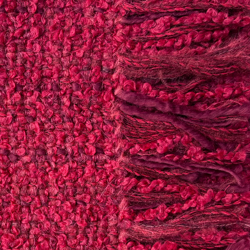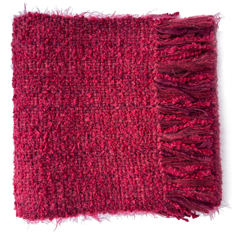 Each scarf is unique, but where I have a few which are very similar I have grouped them together under the same colour reference. This rich burgundy colour scarf has been woven in a boucle giving it a particular texture.