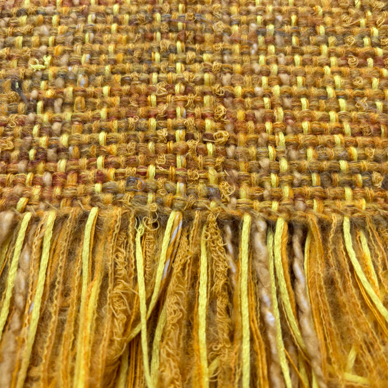 Each scarf is unique, but where I have a few which are very similar I have grouped them together under the same colour reference. This beautiful and rich golden yellow scarf has contrast fibres in dark yellow and brown.