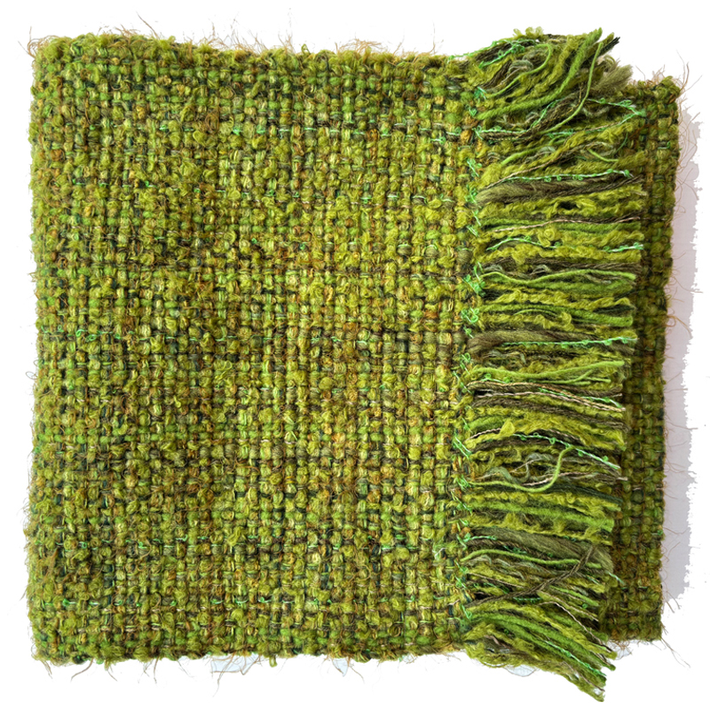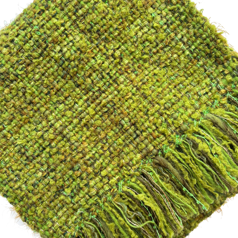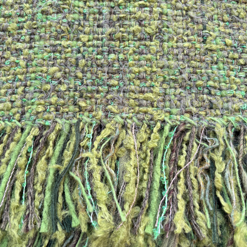 Each scarf is unique, but where I have a few which are very similar I have grouped them together under the same colour reference. This one in particular is beautiful in lime green with undertones in darker green.
