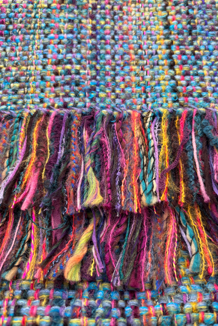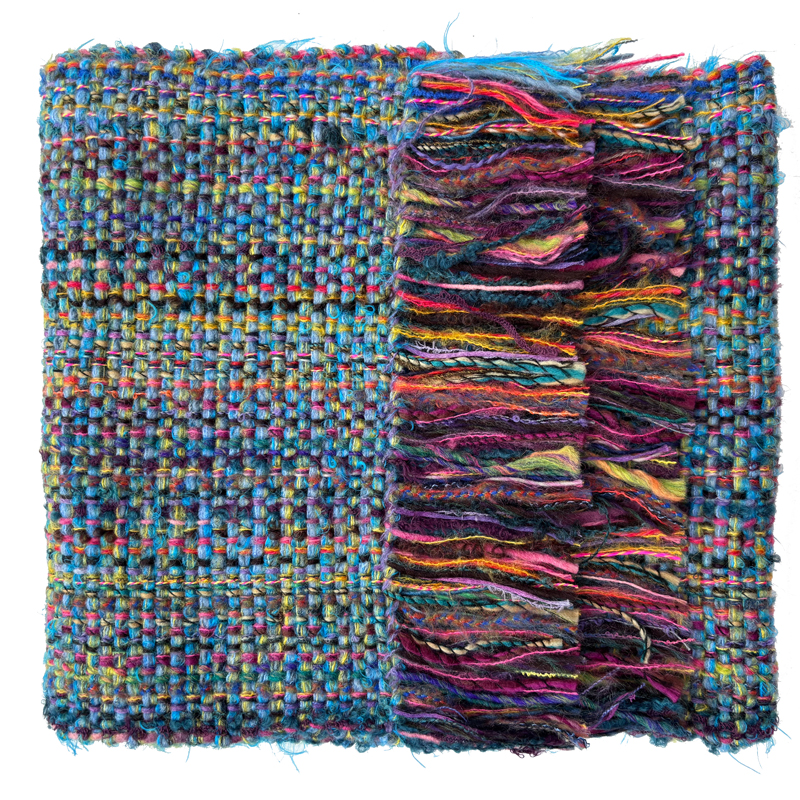 Each scarf is unique, but where I have a few which are very similar I have grouped them together under the same colour reference. This fun scarf has a base in light blue with a combination of many different colours.