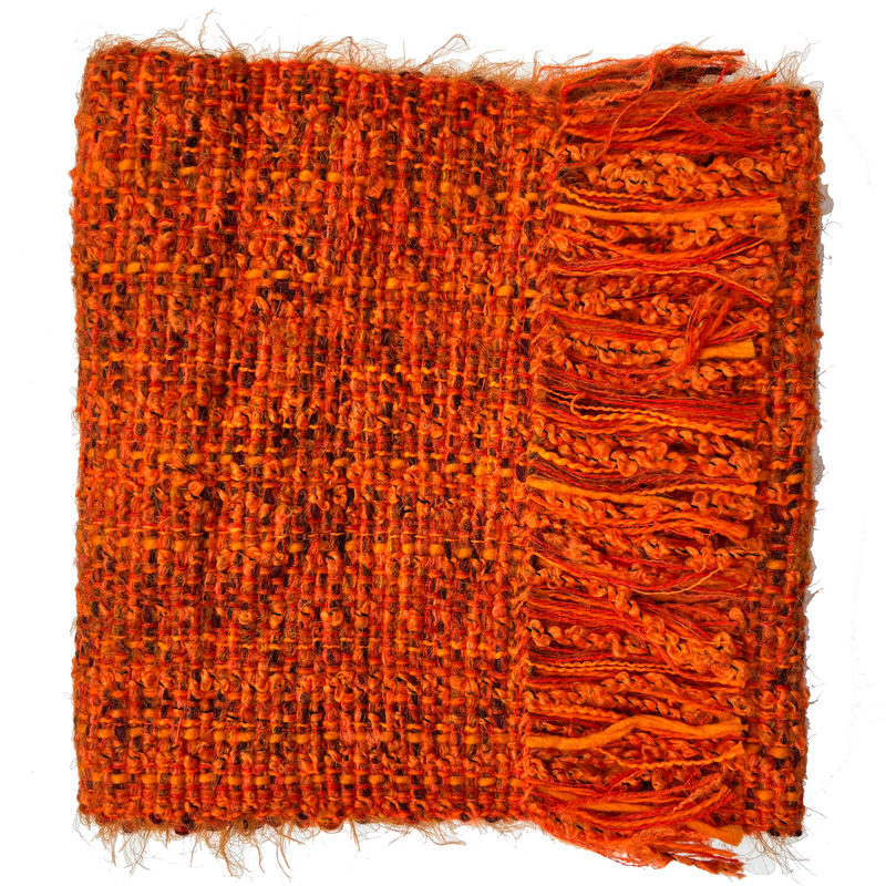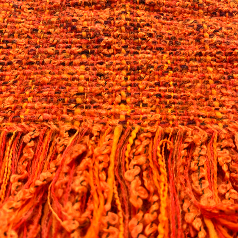 Each scarf is unique, but where I have a few which are very similar I have grouped them together under the same colour reference. This stunning burnt orange scarf has a combination of reds, browns and blacks.