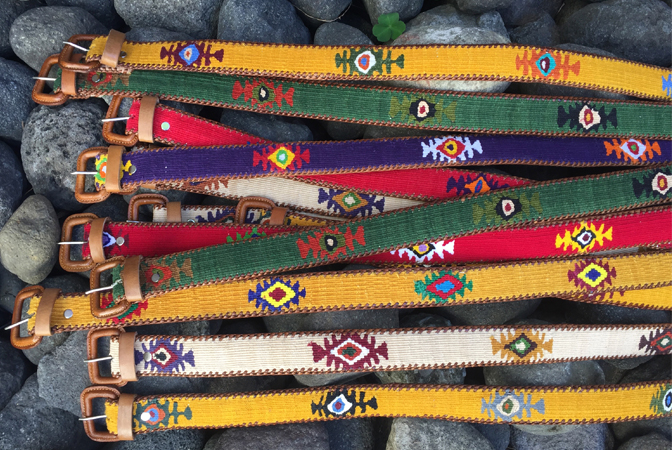 Colourful and stylish Guatemalan polo belts made in leather and cotton. Unisex. These belts have leather stitching and metal eyelets to avoid any fraying and to guarantee their quality.