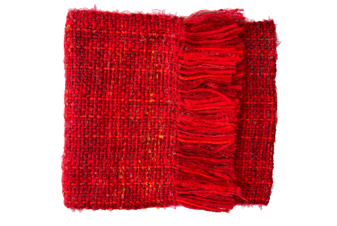 Each scarf is unique, but where I have a few which are very similar I have grouped them together under the same colour reference. This lovely dark red has some threads and small details in brown and off white.