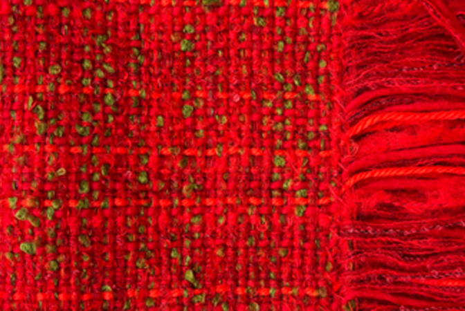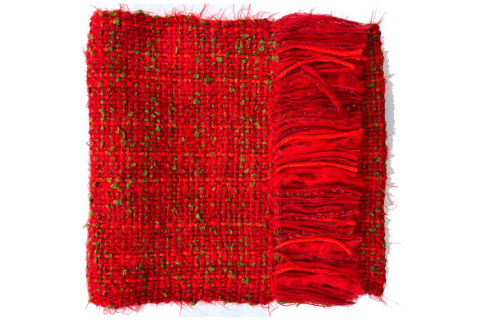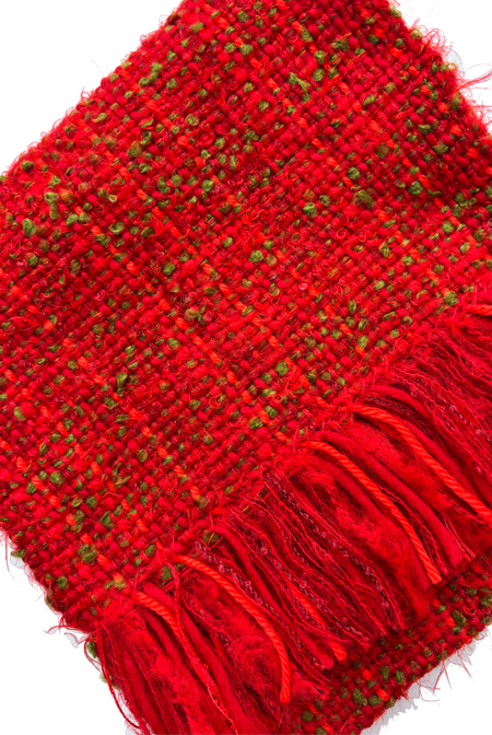 Each scarf is unique, but where I have a few which are very similar I have grouped them together under the same colour reference. This lovely dark red has details in boucle in green/grey colour.