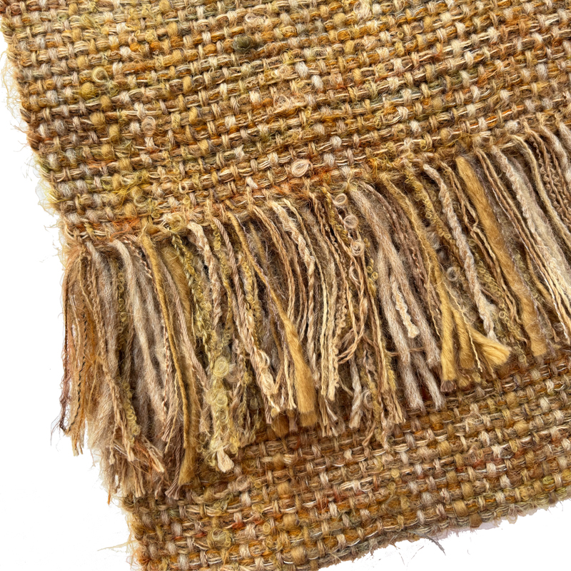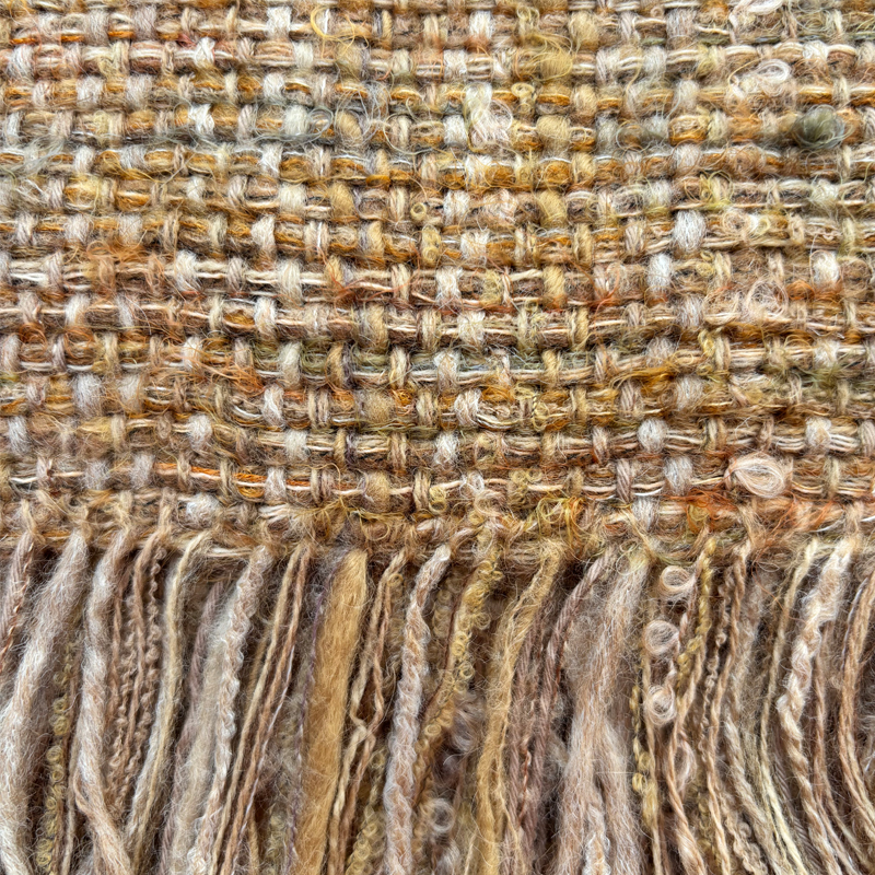 Each scarf is unique, but where I have a few which are very similar I have grouped them together under the same colour reference. This one comes in a warm caramel/toffee colour very easy to combine with navy blues, dark greens, greys, blacks, etc…