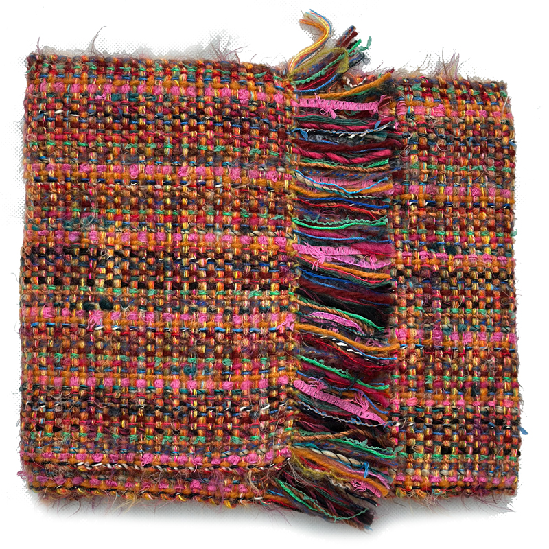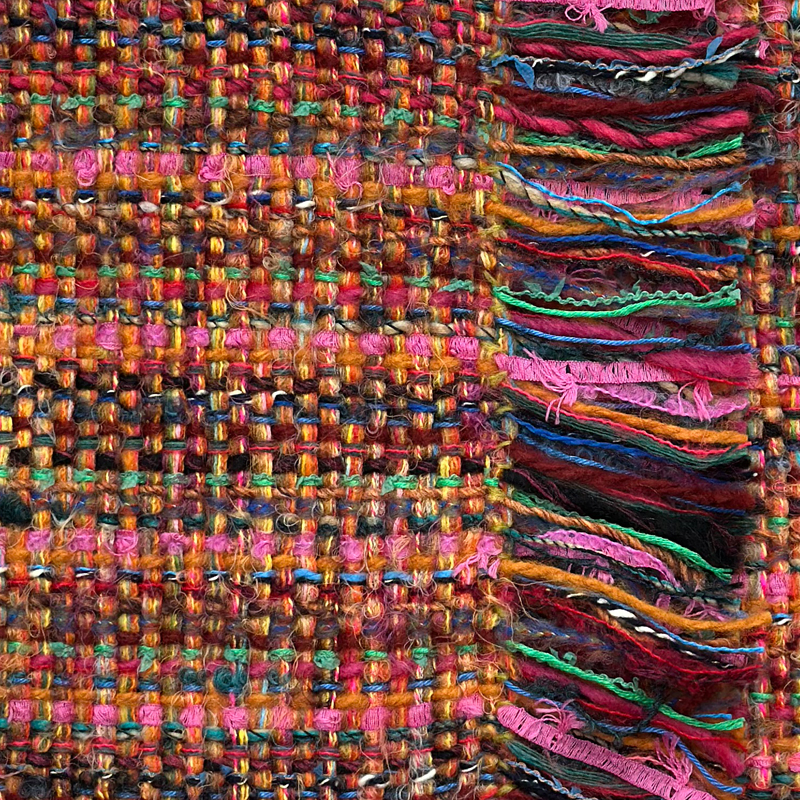 Each scarf is unique, but where I have a few which are very similar I have grouped them together under the same colour reference. This one in particular has a rich pink/peach background with multicoloured fibres.