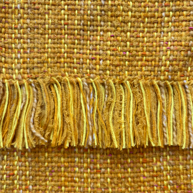 Each scarf is unique, but where I have a few which are very similar I have grouped them together under the same colour reference. This beautiful and rich golden yellow scarf has a few contrast fibres in lighter yellow and a few specks in orange/dark yellow.