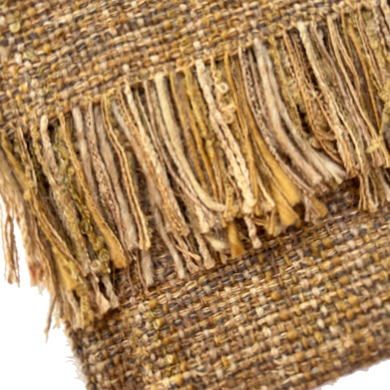 Each scarf is unique, but where I have a few which are very similar I have grouped them together under the same colour reference. This one comes in a warm caramel/toffee colour very easy to combine with navy blues, dark greens, greys, blacks, etc…
